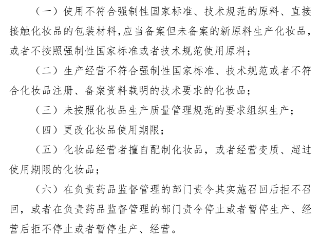 《化妝品監(jiān)督管理?xiàng)l例》第五十九條規(guī)定情形如下: